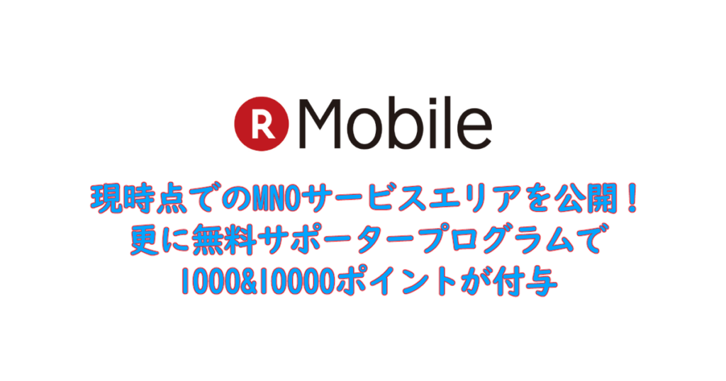 楽天モバイルが現時点でのMNOサービスエリアを公開!更に無料サポータープログラムで1000&10000ポイントが付与